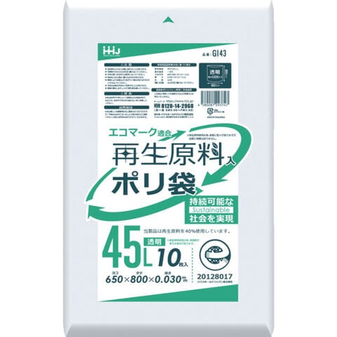 品名 ハウスホールド 再生エコマーク袋 透明 45L 10枚
