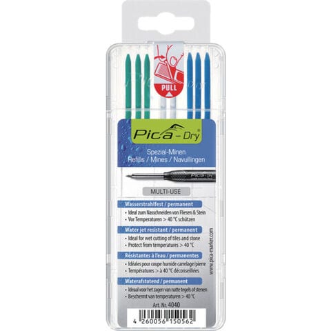 Pica Marker社 ピカマーカー 建築用シャープペンシル“Dry”用耐水性替芯 8本入り 緑青(各3本) 白(2本) ブリスターパック 4040SB03 【DIY 工具 TRUSCO トラスコ 】【おしゃれ おすすめ】