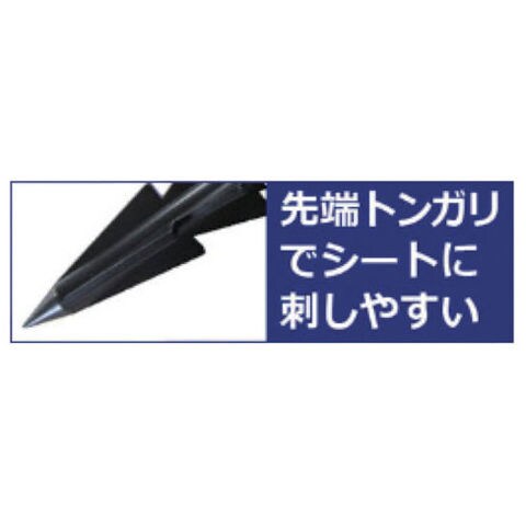 ・頭部がフラット面で、打ち込みしやすく、シートに刺しやすい四方トゲの形状です。