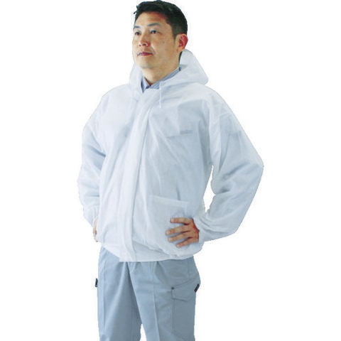 品名 TRUSCO エレブレイク(コロナ放電式帯電防止不織布)フード付ジャンパー M