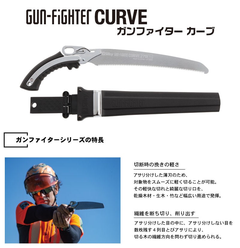 シルキー ガンファイターカーブ 本体 270mm 472-27 【のこぎり 本体 ノコギリ 270 鋸 剪定 乾燥木材 コンパネ 生木 剪定 竹 伐採 切断 防錆めっき Silky ユーエム工業 鞘付 無垢集成材 4列目とびアサリ 衝撃焼入 3Dローラー 日曜大工 DIY 工具】