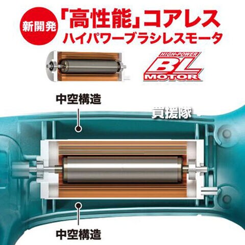 【「高性能」コアレスハイパワーブラシレスモータ搭載】中空構造+スリムなモータ形状で、連続作業時にグリップ部に熱を持ちにくい。さらにスリムで握りやすい細経グリップを実現。