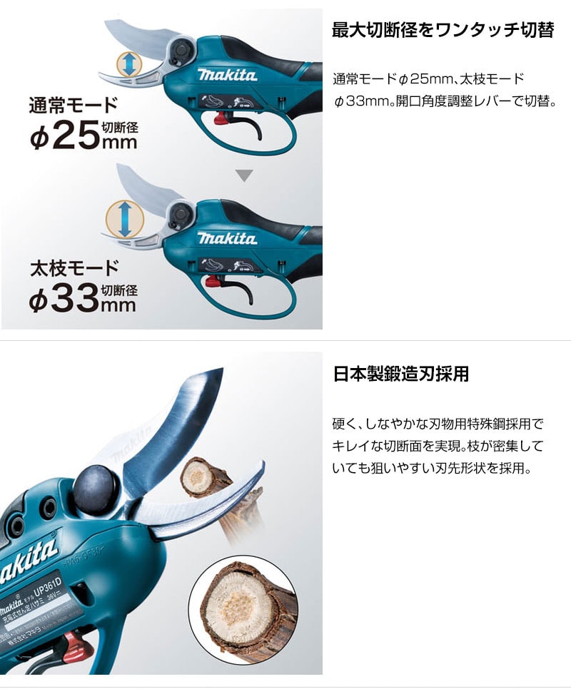 マキタ 純正 充電式せん定ハサミ UP361DPG2 バッテリー2個+急速充電器付き 【makita 充電式 剪定ばさみ 剪定鋏 充電式剪定鋏 ガーデニング鋏 ガーデニングはさみ 園芸鋏 園芸はさみ 剪定 草花 植木 園芸 盆栽 枝 純正 正規品 日本仕様 新品】【おしゃれ おすすめ】