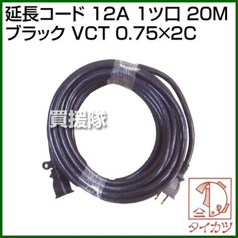 鯛勝産業 延長コード 12A 1ツ口 20M ブラック VCT 0.75×2C [カラー:ブラック] 【高圧洗浄機 高圧洗浄 家庭用 激安 パーツ オプション オプション品 高圧洗浄器 高圧ホース ホース】【おしゃれ おすすめ】