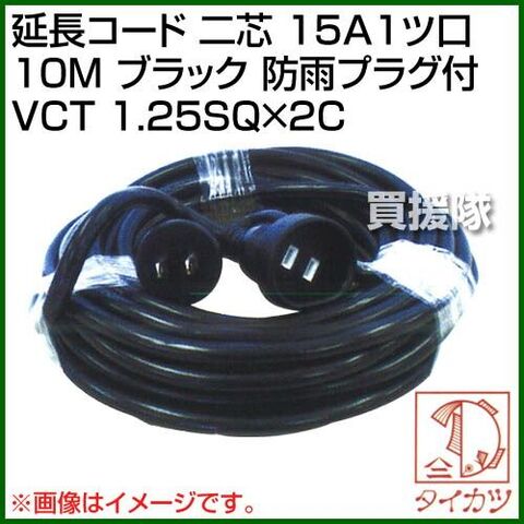 鯛勝産業 延長コード 二芯 15A1ツ口 10M ブラック 防雨プラグ付 VCT 1.25SQ×2C [カラー:ブラック] 【高圧洗浄機 高圧洗浄 家庭用 激安 パーツ オプション オプション品 高圧洗浄器 高圧ホース ホース】【おしゃれ おすすめ】