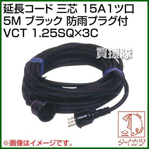 鯛勝産業 延長コード 三芯 15A1ツ口 5M ブラック 防雨プラグ付 VCT 1.25SQ×3C [カラー:ブラック] 【高圧洗浄機 高圧洗浄 家庭用 激安 パーツ オプション オプション品 高圧洗浄器 高圧ホース ホース】【おしゃれ おすすめ】