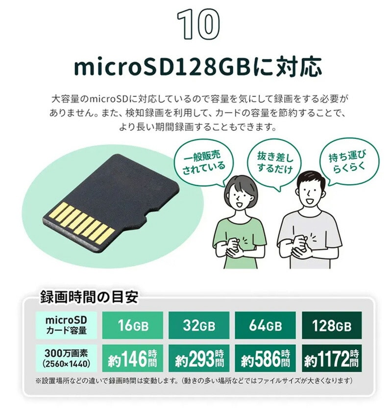※MicroSDカードは転送スピード Class10またはU1推奨 容量16~128GBまで対応