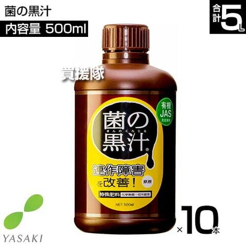 ヤサキ 菌の黒汁 500ml×10本 【有効菌 培養液 原液 便利 連作障害 改善 土 ふかふか 病原菌を寄せ付けない 土壌環境 微生物資材 無臭 土中病原菌 抑制 有機JAS対応資材 野菜 植物 花 トマト きゅうり なす 薔薇 ばら】【おしゃれ おすすめ】