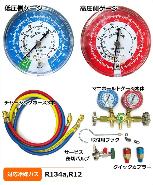 12 134 R12 134a 兼用 2バルブ バルブ ガス セット マニホールド エアコン カーエアコン エアコンガスチャージキット クーラーガスチャージキット クーラーガスチャージングキット マニホールドゲージ エアコンガス クーラーガス チャージ チャージング 充填 補充 マニホールド ゲージ R134a R12 R22 R404A R410A R-134a R-12 R-22 R-404A R-410A