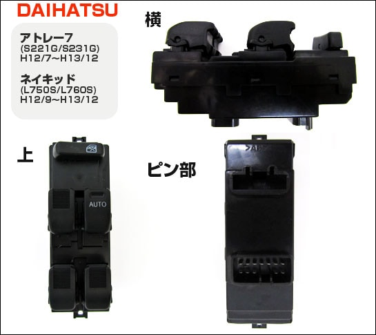 パワーウィンドウスイッチ ダイハツ ネイキッド L750S/L760S 2000年09月~2001年09月 12ピンタイプ