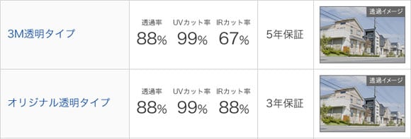 紫外線(UV)や赤外線(IR)をカットしつつ透明度を保つので保安基準もクリア。