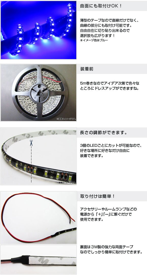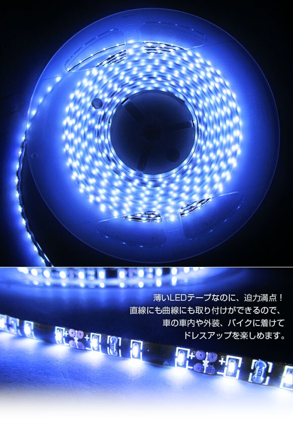 SMDテープ LEDラインテープ テープ型 高感度LED LEDテープライト 外装 内装 インテリア 電装パーツ ドレスアップ 白 WHITE 600連 600発 5メートル 5M 600W