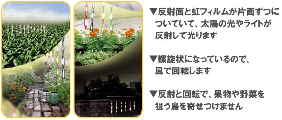 反射と回転で、果物や野菜を狙う鳥を寄せ付けません。