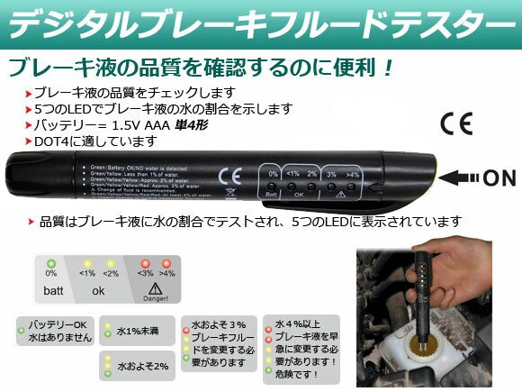 フルードテスター ブレーキ液テスト ブレーキ ブレーキフルード ブレーキオイル テスター 点検 ペーパーロック現象 検査機器 計測器 デジタル