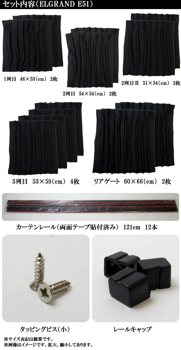 専用カーテンセット 日産 エルグランド E51 入数:1台分(12ピース) APCN02