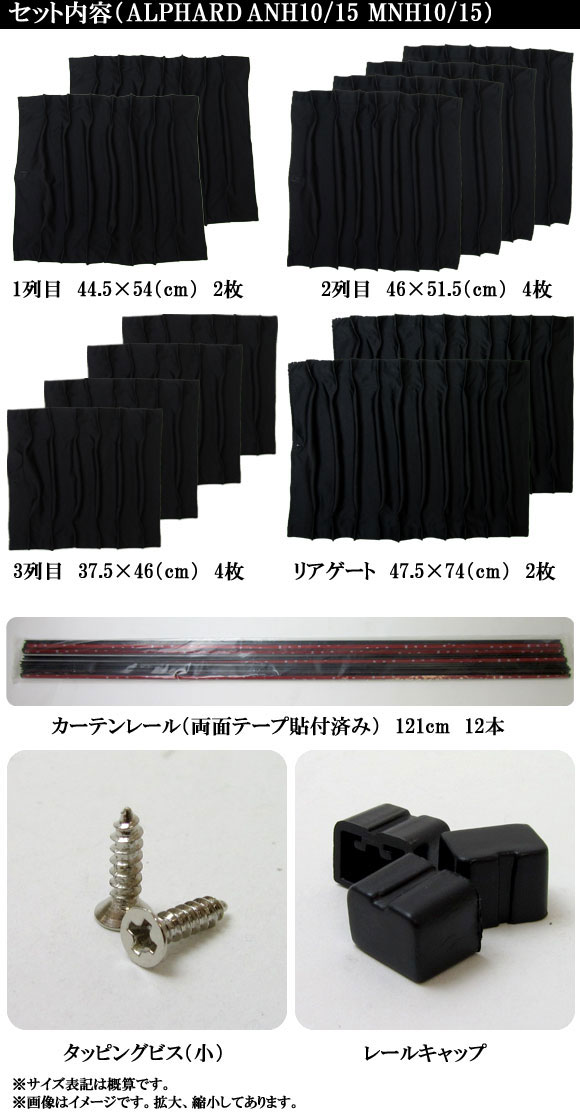 専用カーテンセット トヨタ アルファード ANH10/15 MNH10/15 入数:1台分(12ピース) APCT01