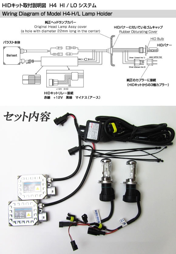 HIDキット 4300K 高品質 HI/LO スライド切替式 H4 厚型バラスト APHIDK4300K