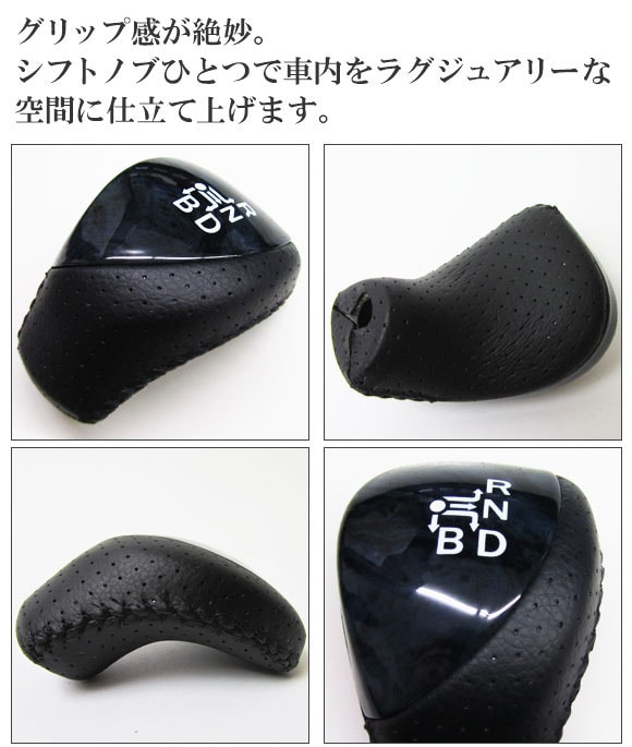 シフトノブ トヨタ プリウス/プリウスα ZVW30(30系)/ZVW41/ZVW40(40系) 黒木目×黒パンチングレザー APSN007