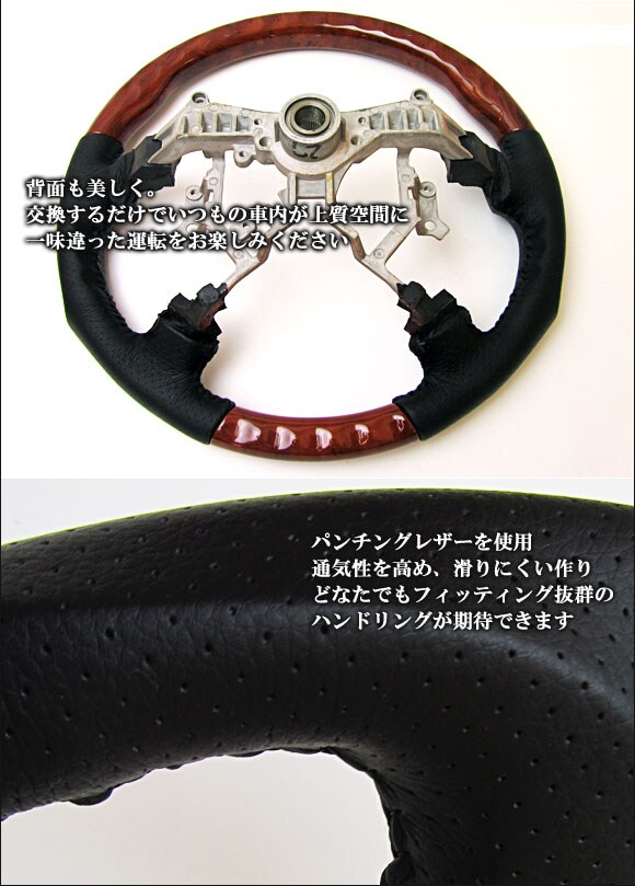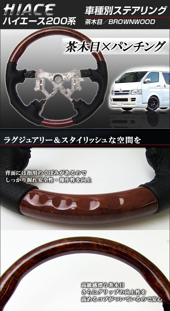 STEERING ハンドル TOYOTA トヨタ自動車 はいえーす HIACE ドレスアップ インテリアパーツ 内装 ブラウン 木目調