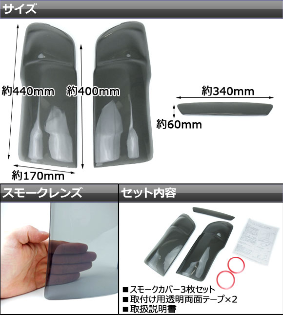 テールライト/ハイマウントライトカバー 日産 NV350キャラバン E26 2012年~ スモーク 入数:3枚、両面テープ AP-SK35
