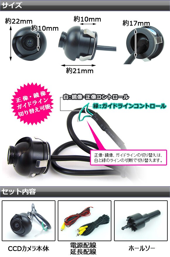 CCD フロント サイド リア カメラ フロントビューカメラ フロントカメラ アイカメラ アイボールカメラ サイドカメラ ビューカメラ サイドビューカメラ バックカメラ CCDカメラ 正像 鏡像 切り替え 超小型 埋込型 角度調整 埋め込み 正像カラー 広角 テレビ TV カー用品 バックモニター 自動車 電源 車用 車 通販 おすすめ 簡単 取り付け