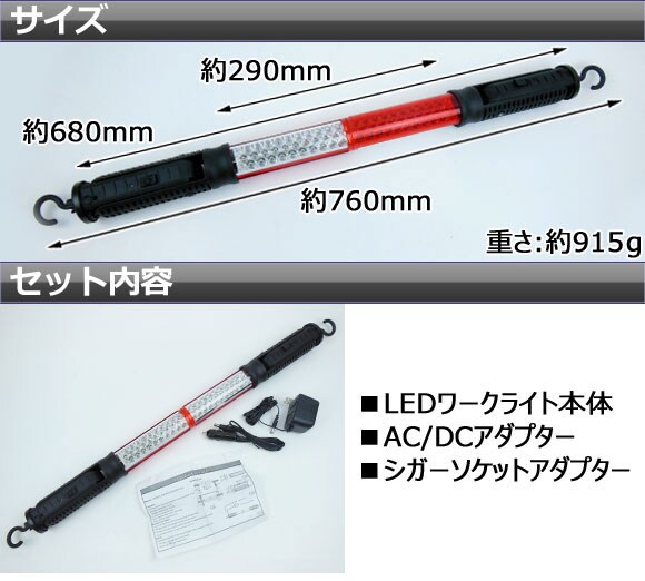 LEDワークライト PSE規格 LED60発 マルチ点灯タイプ AC/DC、シガーソケット充電器付き AP-L260FR