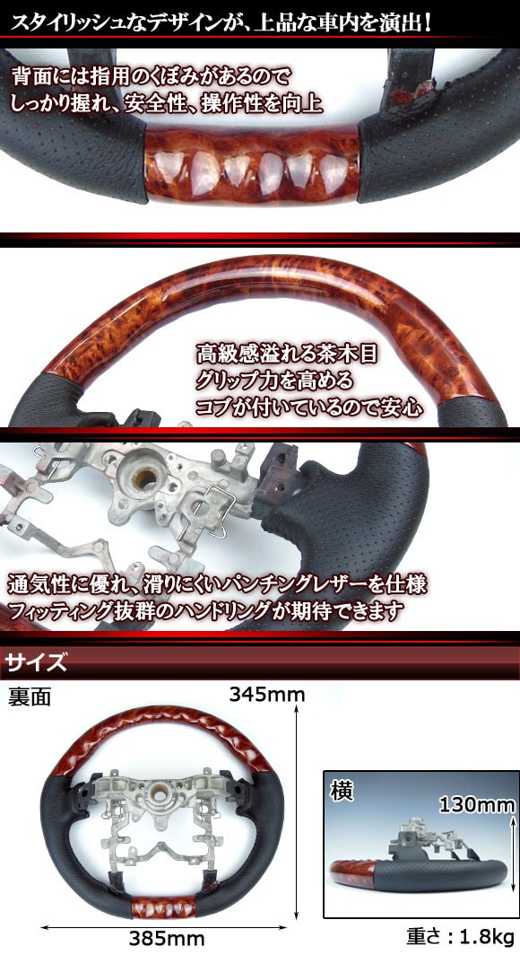ブラウン ノーマルタイプ ハンドル ステアリング 内装 木目調 automobile motorcar オートモービル モーターカー カー 車 自動車 車両 カー用品 内装パーツ