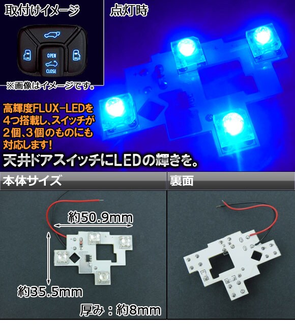 LED 天井ドアスイッチ トヨタ アルファード/ヴェルファイア 20系(ANH20W/25W,GGH20W/25W) 2008年~ 青 4連FLUX-LED APROOF20BL