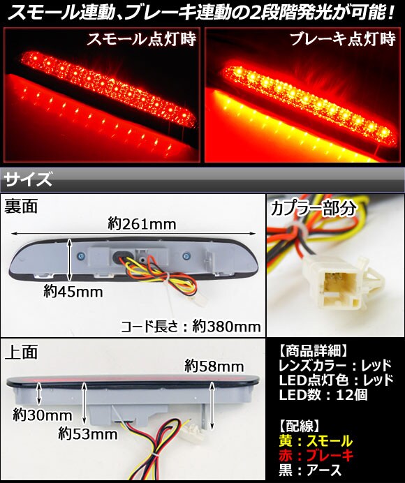 LED ハイマウントストップランプ トヨタ ハイエース 200系1型/2型/3型 標準/ワイドボディ,スーパーGL/DX 2004年~2012年 レッドレンズ APHA200HIMRED