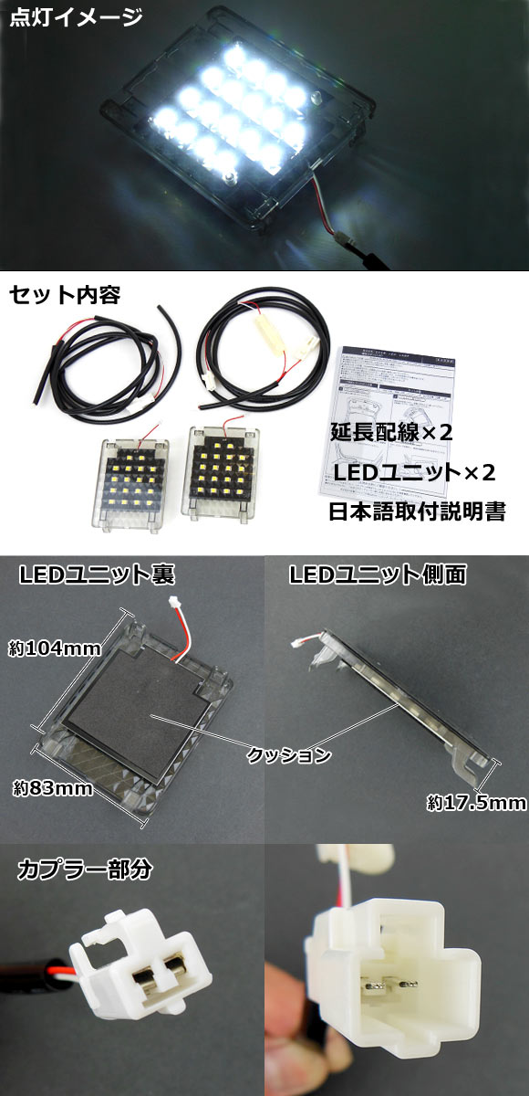 純正のサービスホールに増設するリアラゲッジLEDランプセットです。