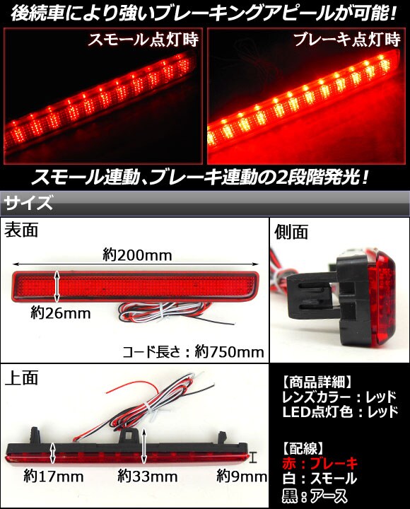 スモール連動、ブレーキ連動の2段階発光が可能!