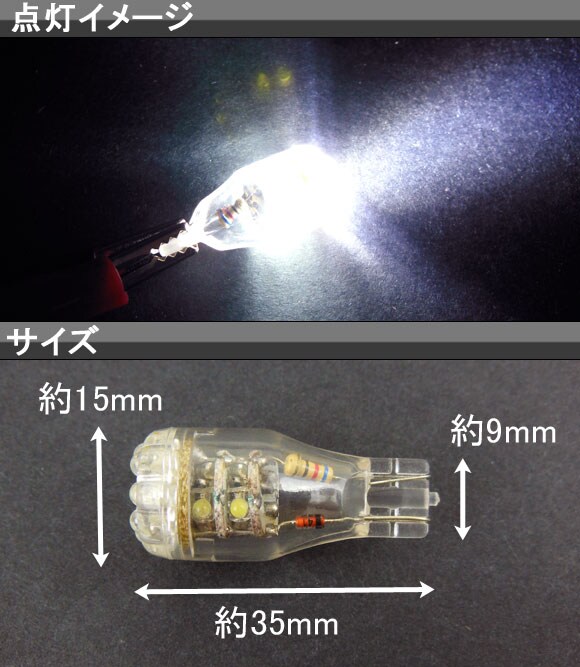 1チップ SMD LEDバルブ ホワイト 砲弾型クリアボティ シングル球 15連 T10/T15/T16兼用 AP-LED-5014