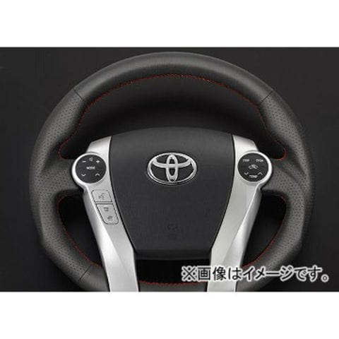シルクブレイズ スポーツステアリング(ガングリップタイプ) トヨタ プリウス30/プリウスα/アクア ZVW30/40,NHP10 オールレザー/レッドステッチ