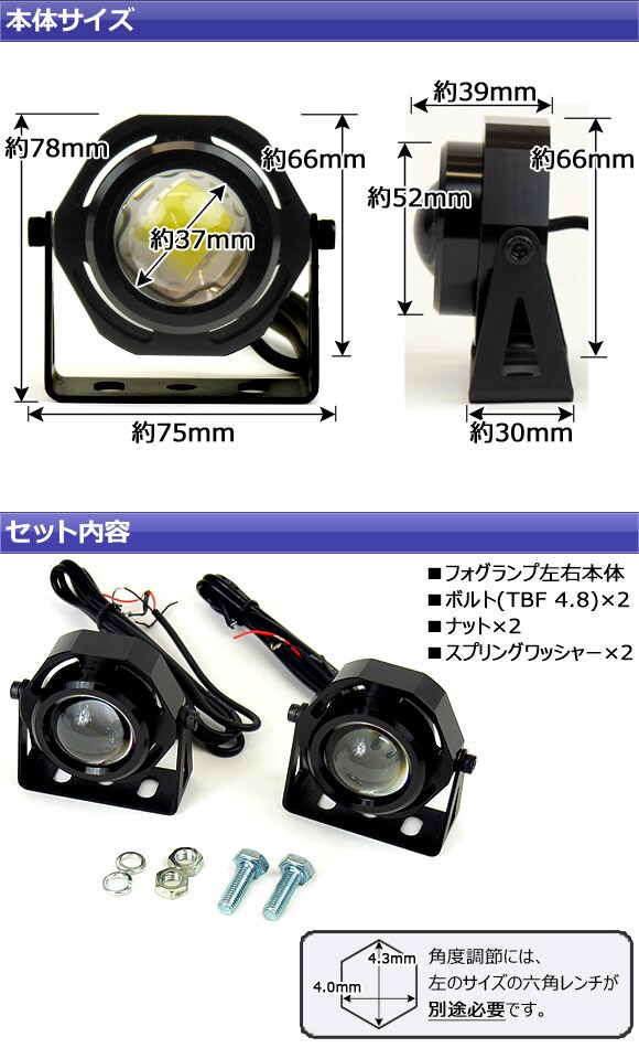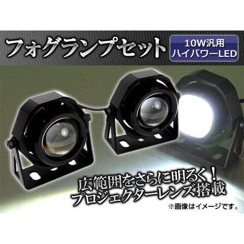 ハイパワーLEDランプ ホワイト プロジェクターレンズ搭載 合計20ワットタイプ AP-LEDFOG-10W 入数:1セット(2個)
