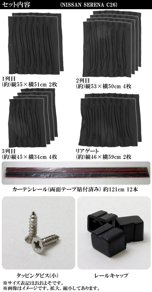 車種別専用カーテンセット 日産 セレナ C26系 ハイウェイスター/Sハイブリット可 2010年~ 入数:1セット(12ピース) AP-CN07