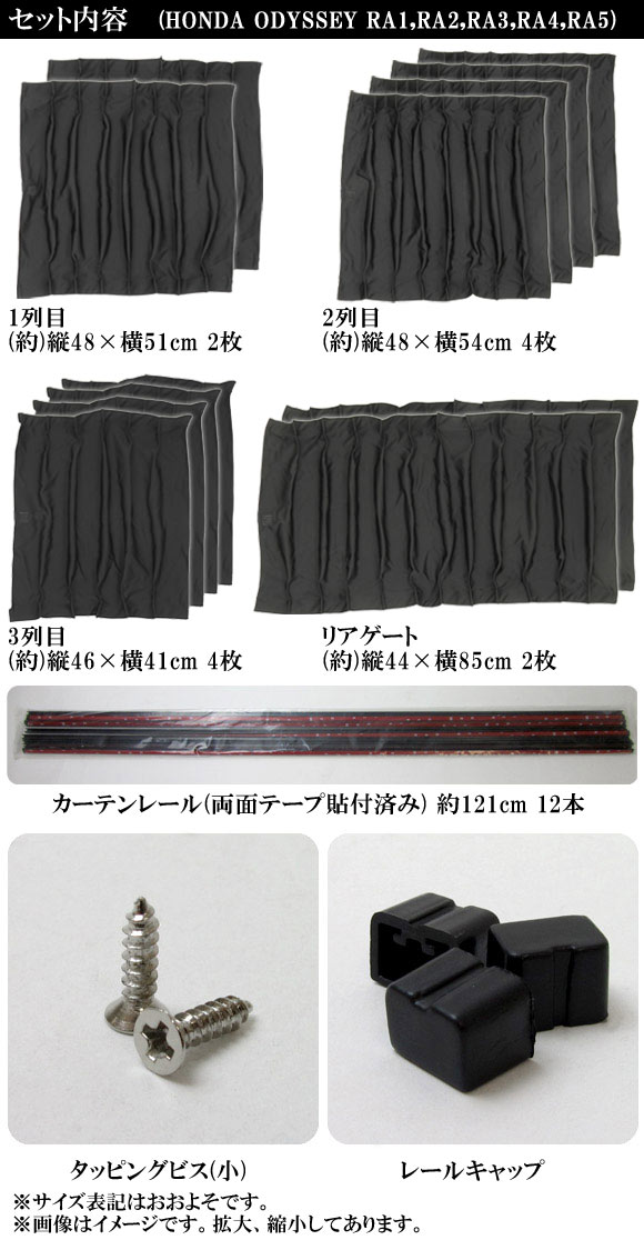 車種別専用カーテンセット ホンダ オデッセイ RA1,RA2,RA3,RA4,RA5 1994年~1999年 入数:1セット(12ピース) AP-CH03