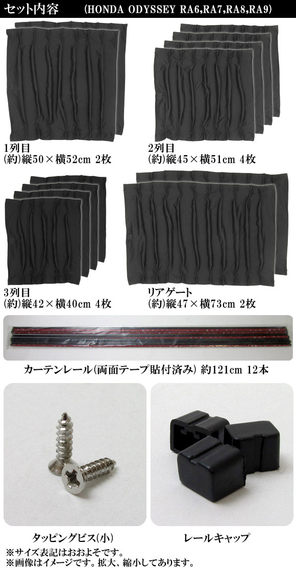 車種別専用カーテンセット ホンダ オデッセイ RA6,RA7,RA8,RA9 1999年~2003年 入数:1セット(12ピース) AP-CH04