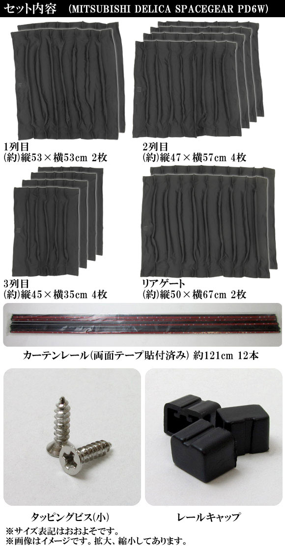 車種別専用カーテンセット 三菱 デリカスペースギア PD6W 2004年10月~2006年12月 入数:1セット(12ピース) AP-CMI02