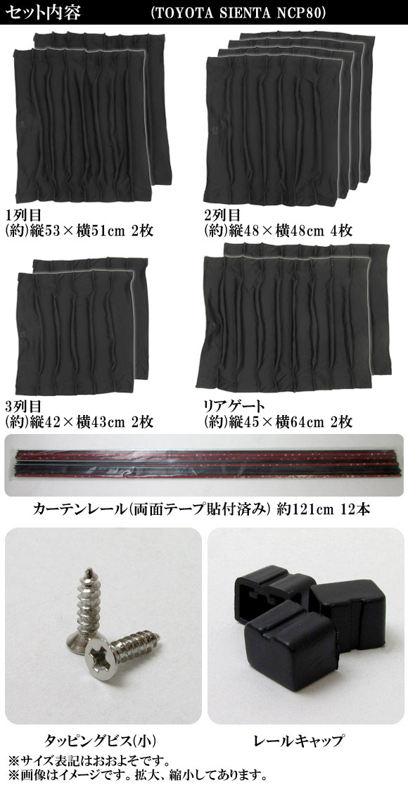 車種別専用カーテンセット トヨタ シエンタ NCP80系 2003年09月~2010年11月 入数:1セット(10ピース) AP-CT16