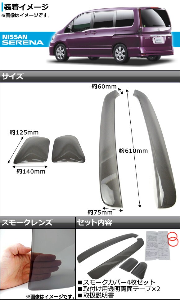 テールライトスモークレンズカバー ニッサン セレナ C25 ハイウェイスター 2006年06月~2010年10月 AP-SK18 入数:1セット(4枚)