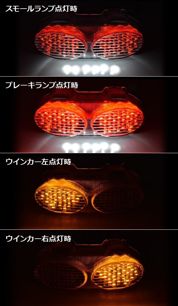 LED テールランプ テールライト テール ランプ ライト スモールランプ ウインカー ウィンカー ブレーキランプ ストップランプ ナンバー灯 ライセンスランプ リア リヤ リアー ニンジャ ninja 忍者 クリアーレンズ スモークレンズ ホワイト 白 レッド 赤 アンバー 橙 イエロー 黄 motorcycle motorbike autobicycle バイク モーターバイク モーターサイクル モーター サイクル オートバイ 2輪車 二輪 二輪車