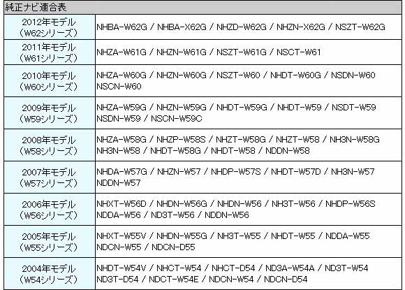2010年モデル(W60シリーズ)NHZA-W60G/NHZN-W60G/NSZT-W60/NHDT-W60G/NSDN-W60/NSCN-W60