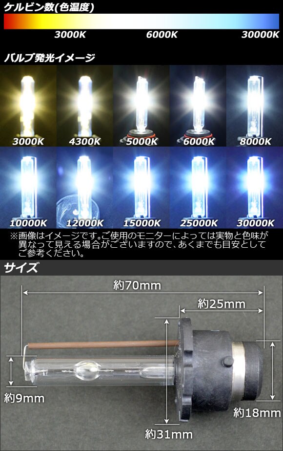 ※ケルビン数6000Kまでは、車検の基準内となります。光軸につきましては、車種によって通らない場合もございます。