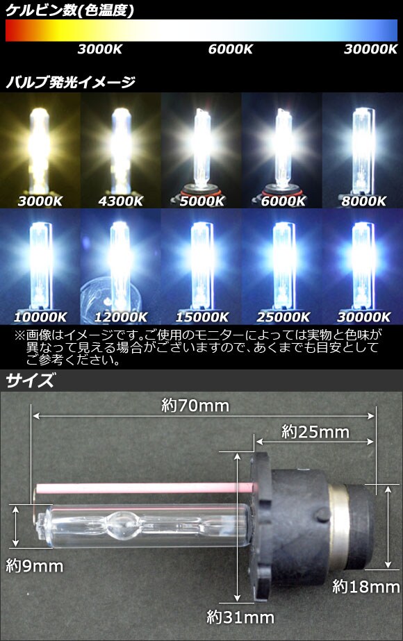 ※ケルビン数6000Kまでは、車検の基準内となります。光軸につきましては、車種によって通らない場合もございます。