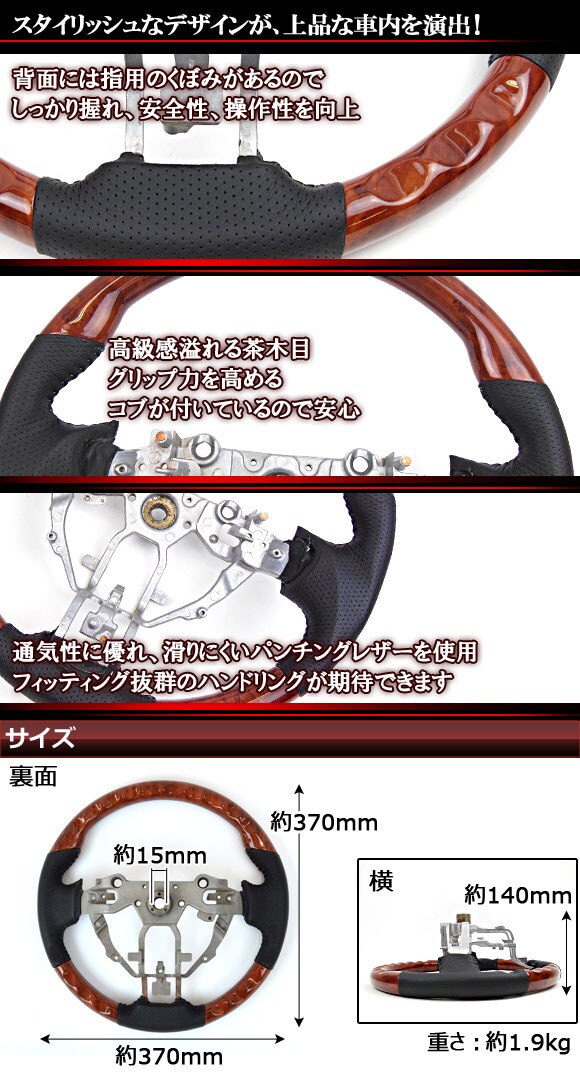 ステアリング ニッサン セレナ C26 2010年11月~ 茶木目 ガングリップタイプ