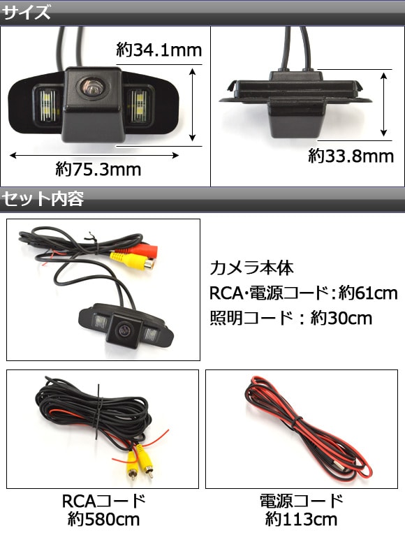 車種別設計のバックカメラです。
