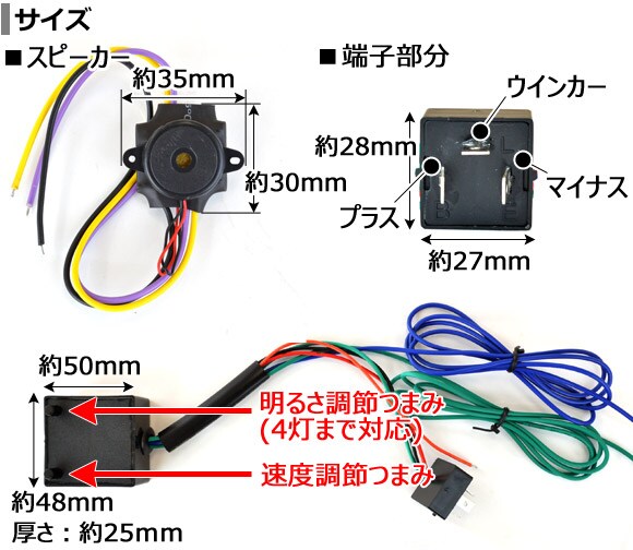 ハイフラ防止 3ピンタイプ スピーカー付き 12V