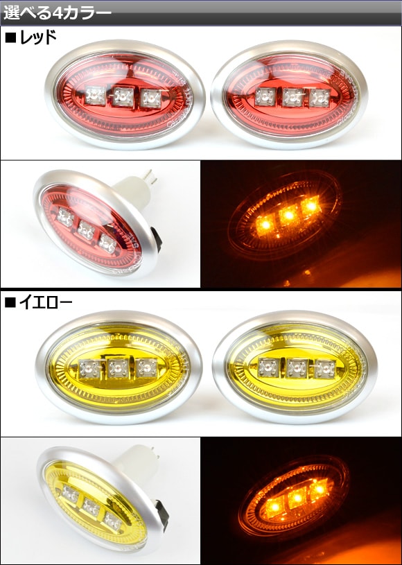 レッド AP-SD-BMWMIN06-C-R イエロー AP-SD-BMWMIN06-C-Y グリーン AP-SD-BMWMIN06-C-G ブルー AP-SD-BMWMIN06-C-BU 4562430215875 4562430215882 4562430215899 4562430215905 サイドランプ ターンシグナルランプ ターンランプ クリスタルサイドマーカー BMW ビーエムダブリュー ビーエム NEW MINI ONE BMWミニ ミニ ニュー ニューミニ ミニクーパーS クーパー S ワン クーパーS クラブマン コンバーチブル 3発 3灯 3個 LED 赤 黄色 緑 青 オレンジ サイド パーツ カスタム カスタムパーツ エクステリア 外装