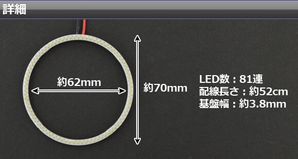 ホワイト AP-IKACOB-70-WH ブルー AP-IKACOB-70-BL 4562430217152 4562430217169 LED イカリング エンジェルアイ エンジェルリング イカ リング 円形 81発 81灯 81個 70ミリ black 白 white 青 blue 細幅 極細 極薄 高輝度 チップオンボード ヘッドライト ヘッドランプ フォグライト フォグランプ フォグ スピーカー 間接照明 照明 電灯 発光 ドレスアップ カスタマイズ automobile motorcar オートモービル モーターカー カー 車 自動車 車両