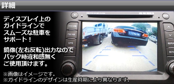 バックカメラに最適な鏡像タイプです。ディスプレイには駐車に便利なガイドラインを表示!